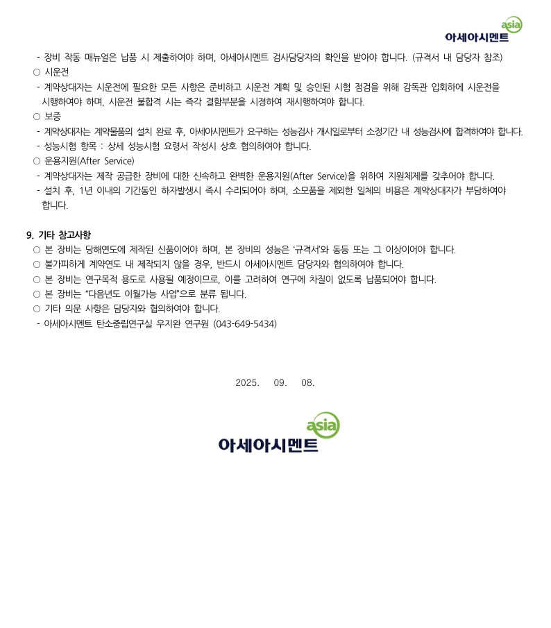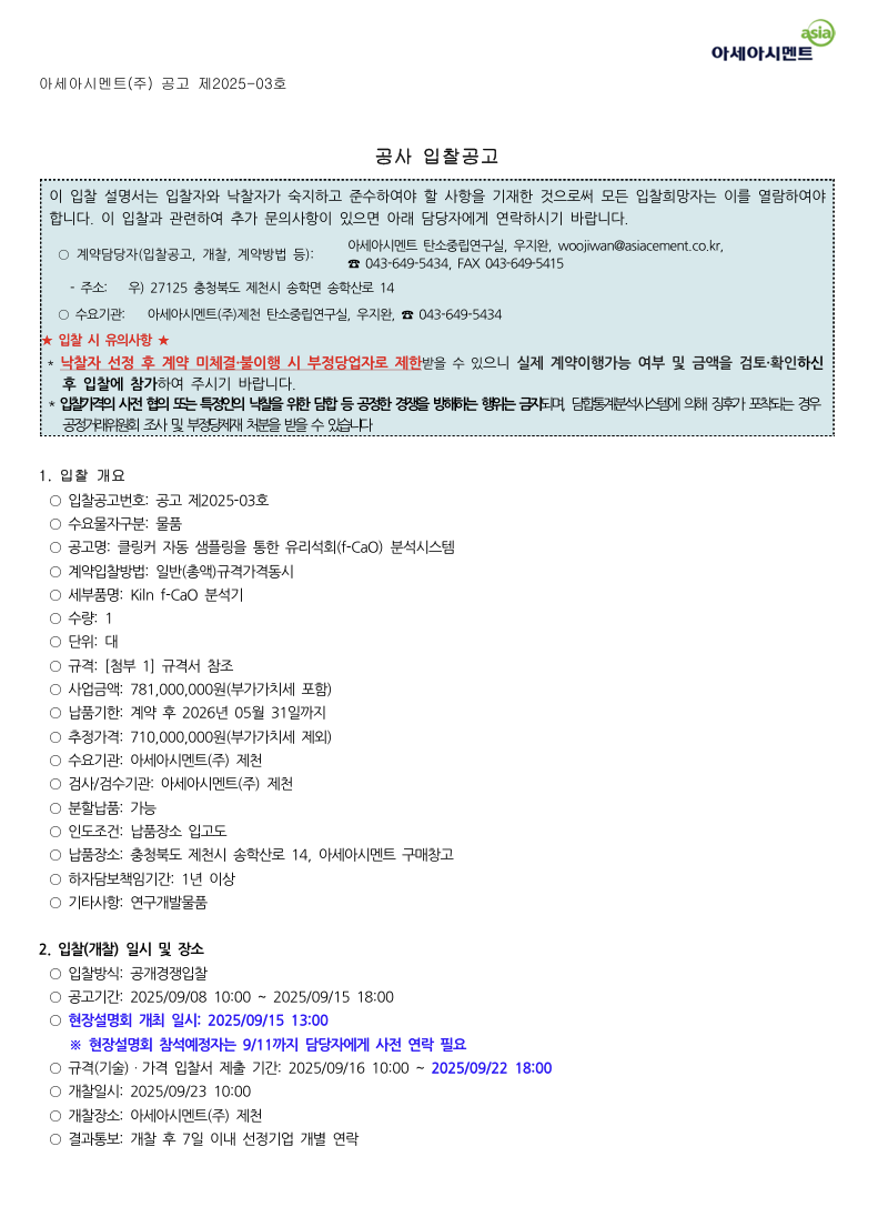 (공고 제2025-03호)연구개발 실증화 장비 입찰공고